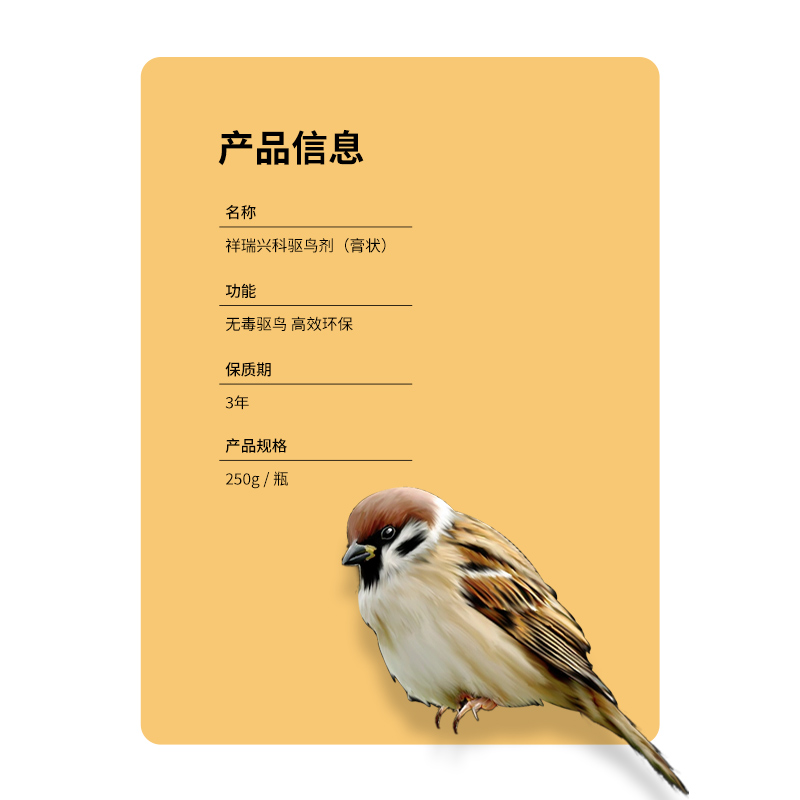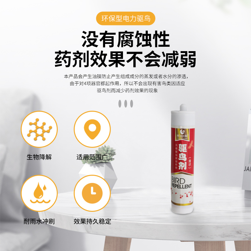 一.XKNJ-2型环保型3044永利集团官网剂是我公司新研发的一种驱赶鸟类产品,该产品不像原有的仅对一项感觉器官作用的退治方法,而是从视觉(怕光;恐色),触觉(粘性),味觉,嗅觉等4项器官同时起作用来退治飞禽,效果非常显著。产品主要天然香料,对人畜无害,此外为了刺激嗅觉还添加了天然植物性精油,此产品是环保的天然驱鸟剂。本产品对设备没有任何腐蚀性,并且本产品会产生油膜防止产生组成成分的蒸发或者水分的渗透,由于对4项器官都起作用,所以不会出现有害鸟类因适应驱鸟剂而减少药剂效果的现象。该产品的持效期为1年左右,可适应任何气候,在-20°C以下,37°C以上的温度都不会影响其效果,该产品广泛用于飞机场,电气化铁路,油田,电力设施,太阳能发电,太阳能路灯,食品厂,养殖场,食品饲料仓库,果园,农田等行业。安装于草坪、树枝、铁塔、电线杆、水箱表面、木头、灌木、牌匾、铁道边、仓库、停车设备、普通建筑物、大众化建筑物和公共建筑物等鸟害场所。
