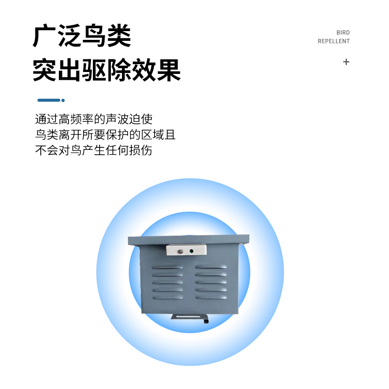 2、设备内置超声波广谱驱除模块,对常见鸟类、鼠类、昆虫等具有较强的驱除作用。能有效抑制鸟类、鼠类筑巢、栖息。一般情况下驱除效果一周左右见效。